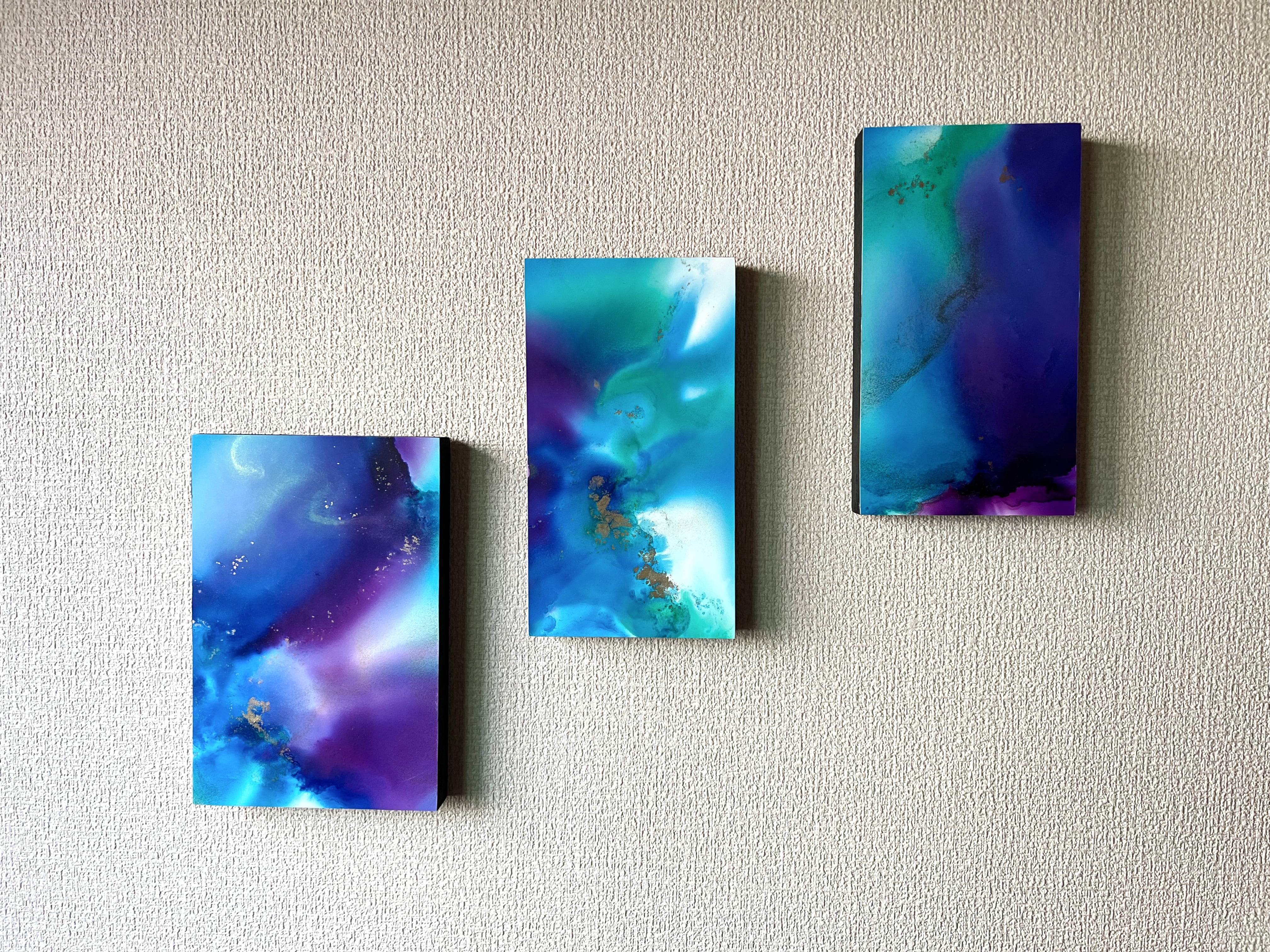 ご覧頂きありがとうございます。 title: 清奏の運河 ━━━━━━━━━━━━━━━ ▼作品の想い アルプスの山々と緑の中を ゆったりと、だけど壮大に流れる運河を イメージしました Instagramの音楽と共に、 流れる水を感じて頂ければと思います ※上下は決まってませんので お好きにレイアウトしてください ※写真は画鋲を使用しています ・サイズ 3連1セット 約118mm×177mm ×1 約97 mm×177mm ×2 厚み約20mm ・使用画材 コピックインク 木パネル ・制作時期 2025年 一点ものです。 ━━━━━━━━━━━━━━━ 褐色を避けるため、 直射日光を避けて保存を推奨いたします ━━━━━━━━━━━━━━━ その他【ご購入前のご一読】 なども全てお読み頂き ご確認の上、ご購入頂きますようお願い致します。